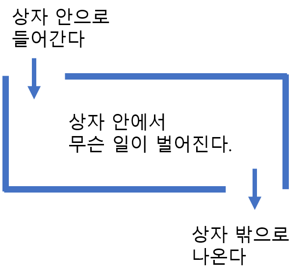 2) 내부 코드의 묶음(안에서 무슨 일이 벌어짐)