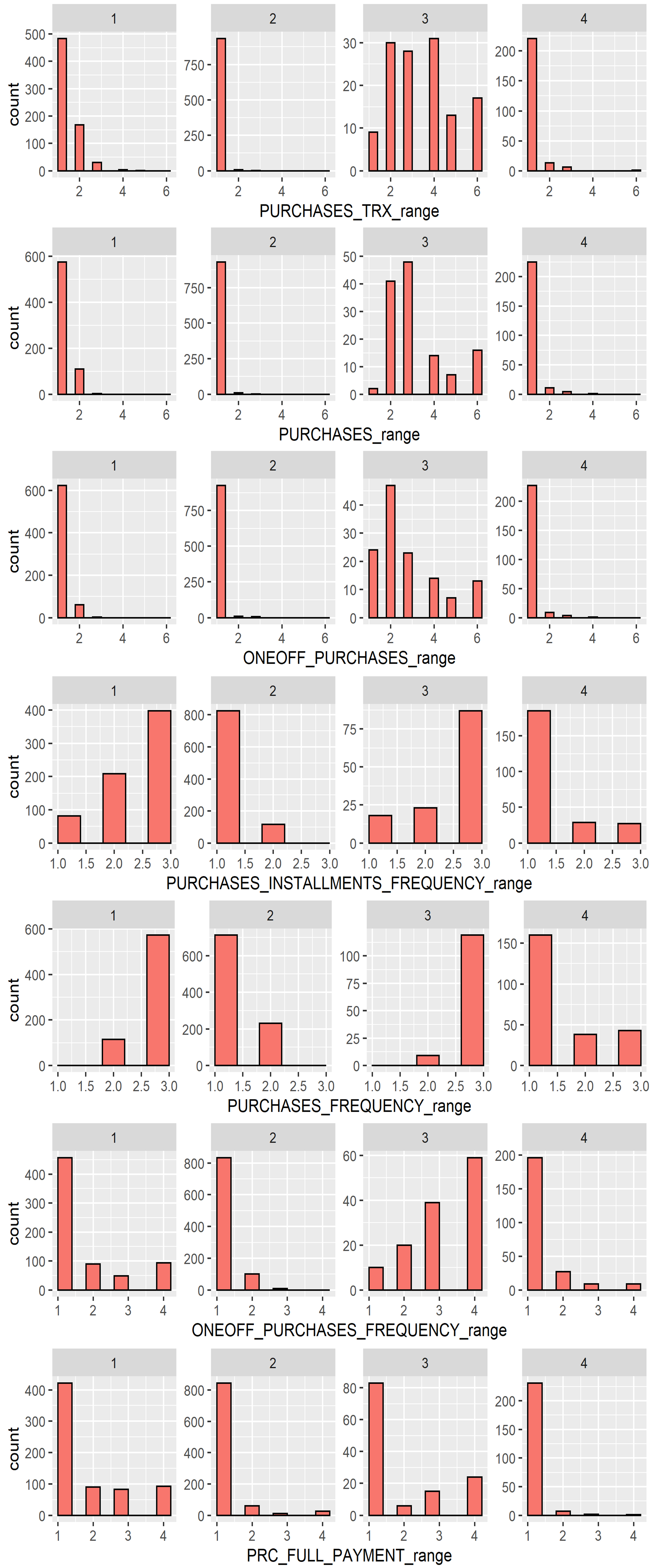 PURCHASES_INSTALLMENTS_FREQUENCY_range CASH_ADVANCE_FREQUENCY_range